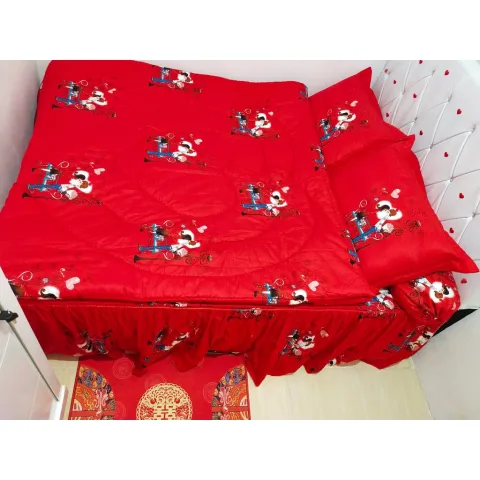 SET Bed Cover Sprei rumbai katun jepang+2 sarung bantal sleting+2 sarung guling Wedding Valentine (PO 14 Hari)