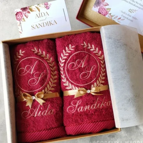 Hadiah Wedding Couple Gift pernikahan Handuk Premium - Maroon