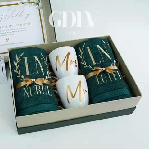 Kado Wedding Hadiah pernikahan Handuk Premium dan Mug Couple Custom