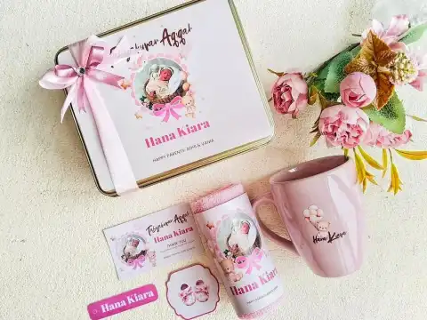Souvenir Baby Lahiran/ Sebulanan/ Aqiqah Hampers Tin Box By Godeliva
