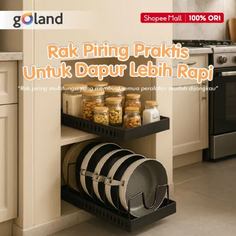 Goland Kitchen Set Stainless - Rak Dorong Bumbu & Rak Alat Dapur Panjang 42 & 52 Cm - Rak Serbaguna