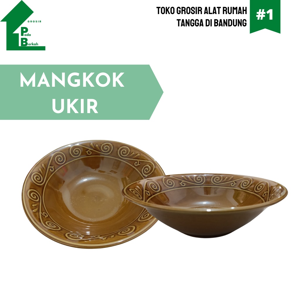 Mangkuk Makan Keramik Ukir Cokelat Mangkuk Makan Keramik 7 Inch