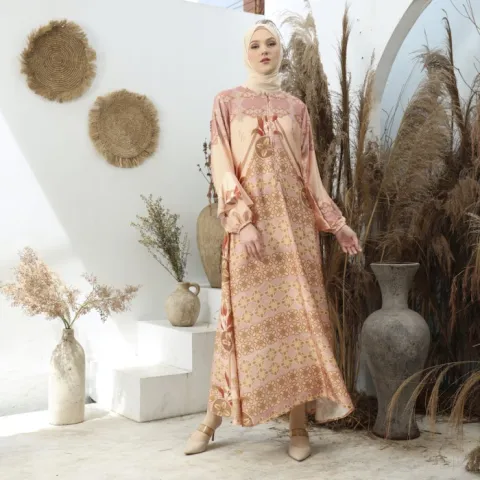 Gamis Wanita Dress Muslim Abaya Kirana Hana Hani - Peach