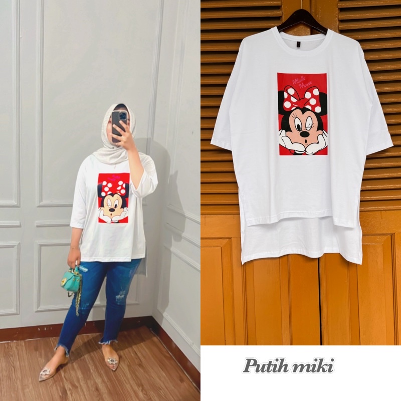KAOS OVERSIZE MOTIF TERBARU MOTIF MICKY OVERSIZE BASIC TOP HIJAB KAOS WANITA LENGAN 7/8