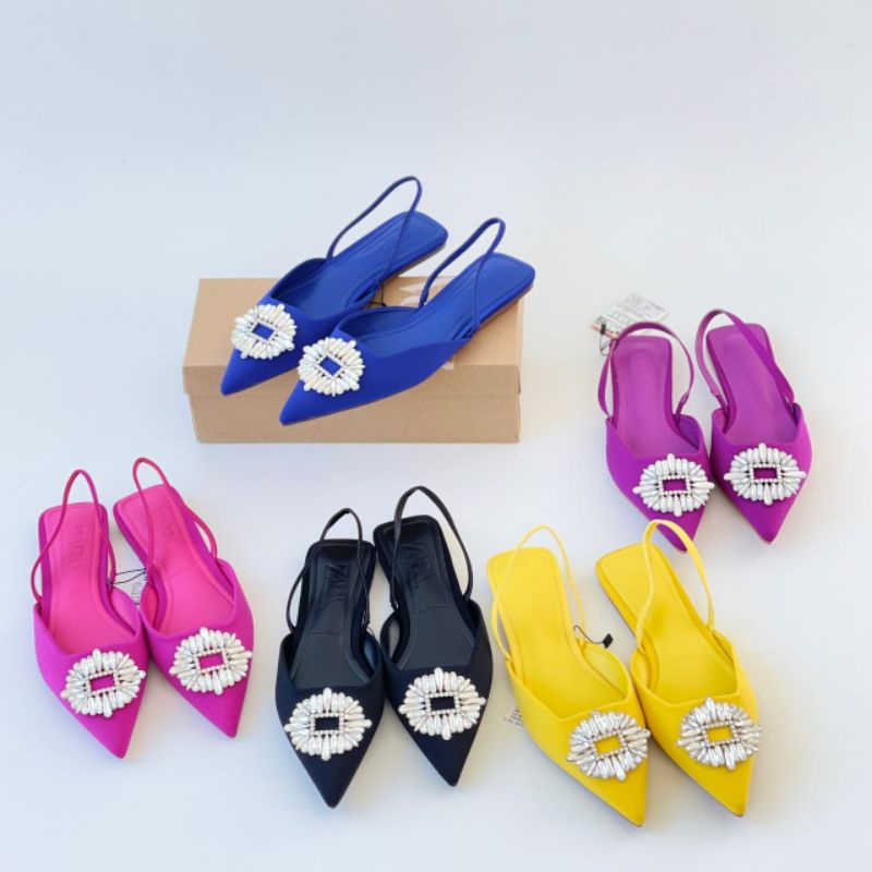 PROMO SALE Flat Shoes Zara Sepatu Sandal Pesta Pink Kuning Hitam ungu biru navy yellow black blue purple