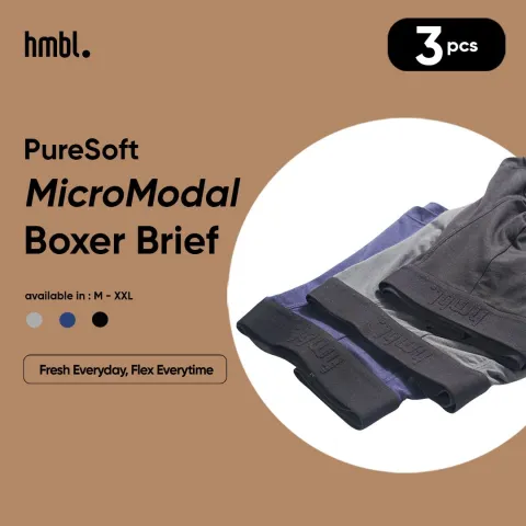 MicroModal Boxer Brief Men 3 PCS, Celana Dalam Pria Underwear CD Cowok Dewasa (M-XXL) | Soft & Cozy Celana Dalam Pria Fit Karet Lembut Nyaman