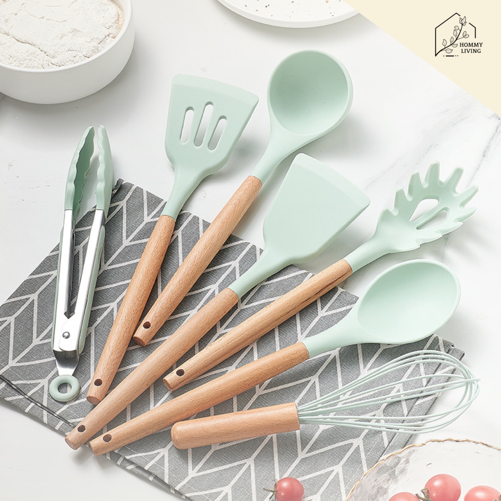 Hommy Living Spatula Sodet Silikon Set 12 in 1 Peralatan Masak Dapur - Silicone Kitchen Utensils