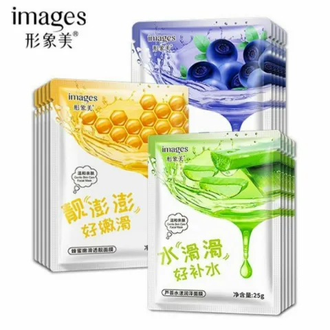 Images Hydrating Mask Aloe Vera Blueberry Honey Pomegranate Facial Sheet Mask Masker Wajah Natural Skincare Glowing - 1 PCS