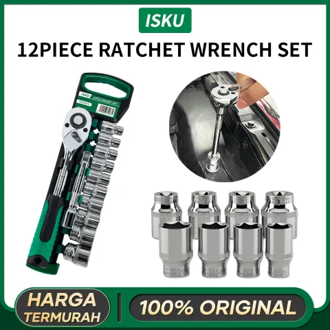 ISKU Kunci Socket Wrench 12pcs 1/2 Inch Kunci Shock Set Kombinasi