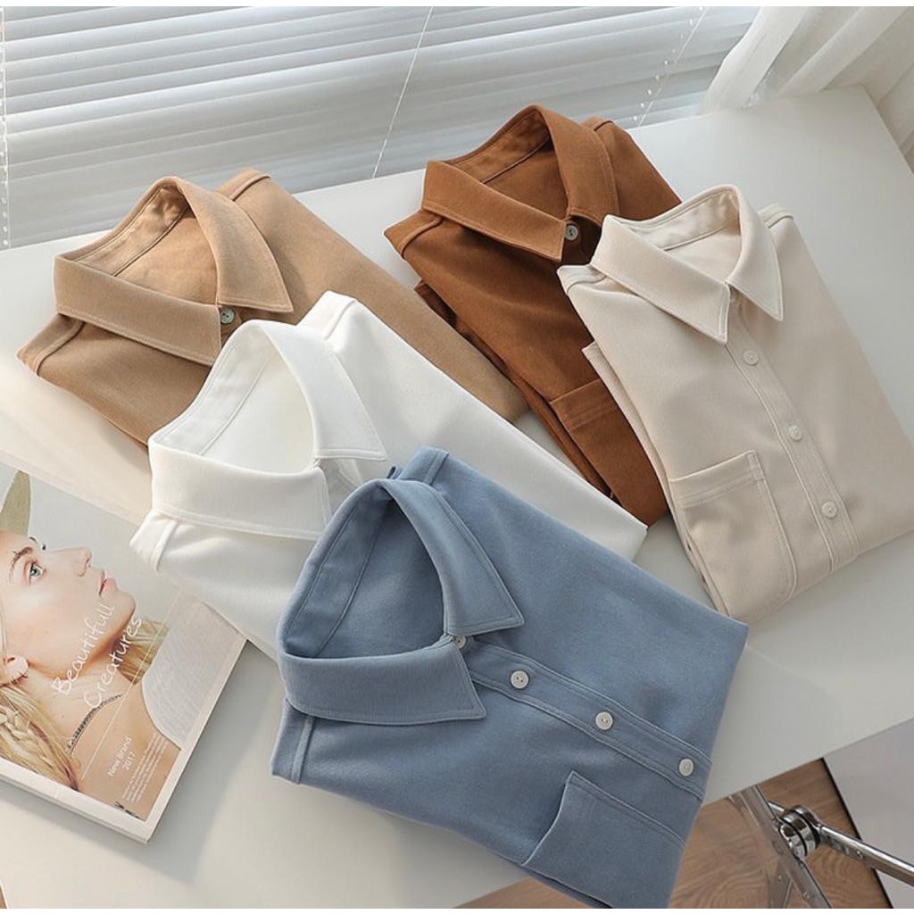 Trendy Top Kemeja Wanita Lengan Panjang Polos Jumbo Oversize Warna Putih Casual Formal Berkualitas Terbaru