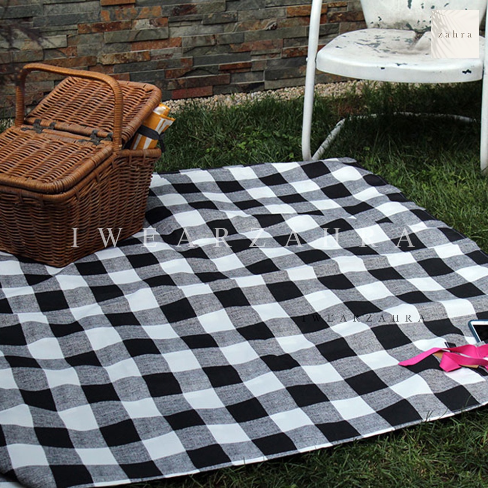 ALAS PIKNIK MONOKROM - Kain Kotak Kotak Hitam Putih Lembut