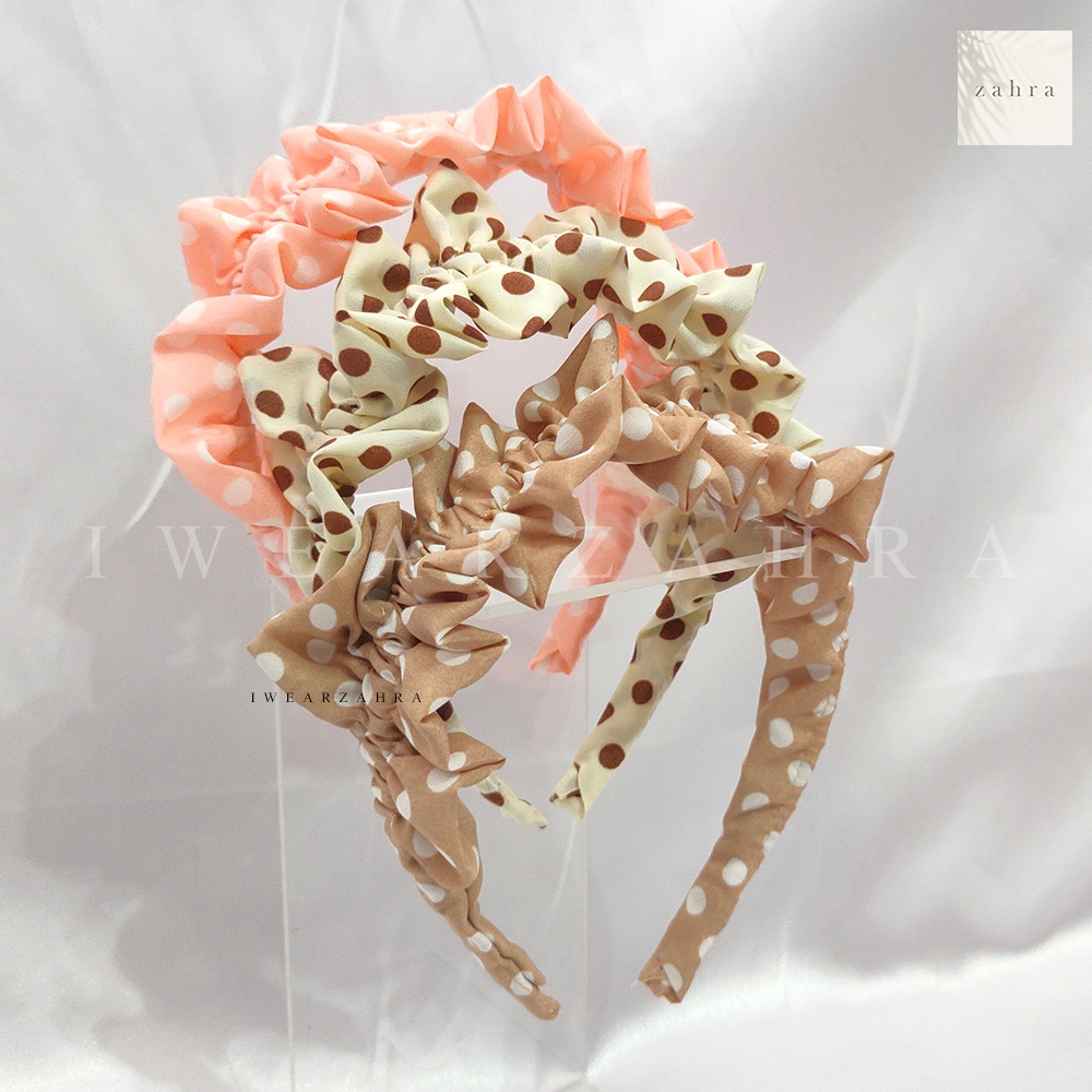 BANDO RUFFLE POLKADOT - Bando Kerut Korea Viral Aksesoris Rambut Model Mahkota Bandana Hair Accessories Bayi Anak Mutiara Natal Perempuan Wanita