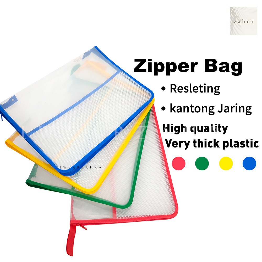 MAP ZIPPER BAG 1 PC - Folder File Resleting Map Dokumen Model Transparan High Quality Perlengkapan Kantor Alat Tulis Anak Sekolah