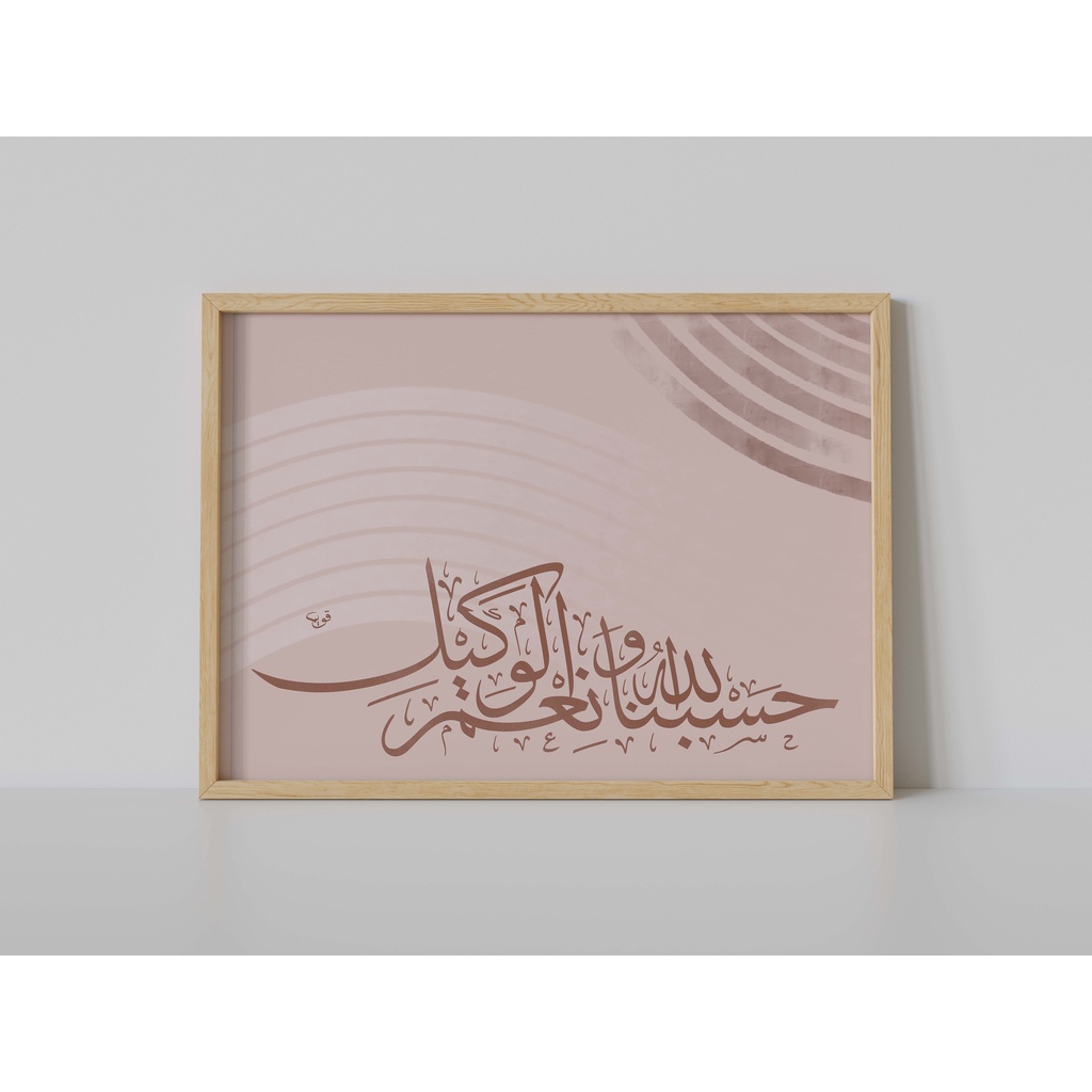 Kaligrafi Hasbunallah Wa Ni'mal Wakil with Minimali abstract art Boho Biege Design