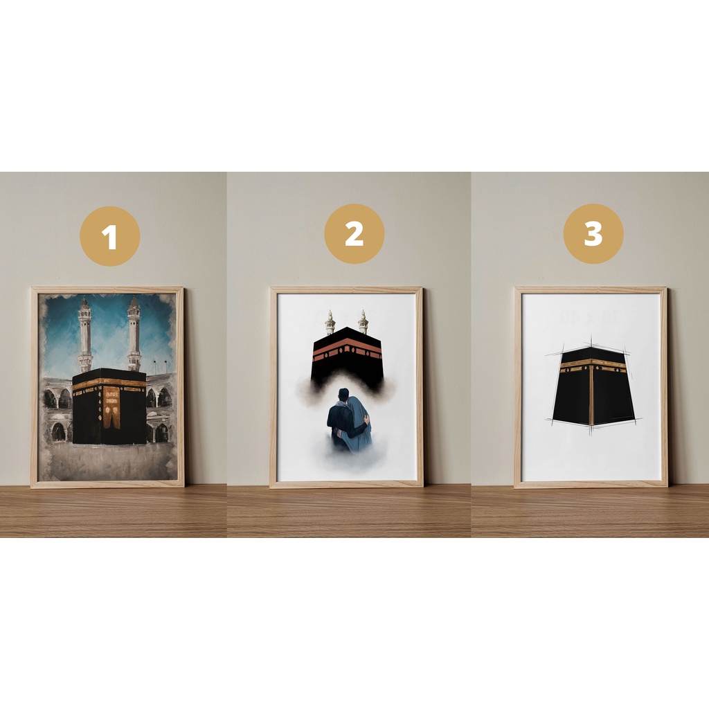 Pajangan Islami gambar & Lukisan Kabah - Mekah - Frame Kayu Minimalist Aesthetic Home Decor