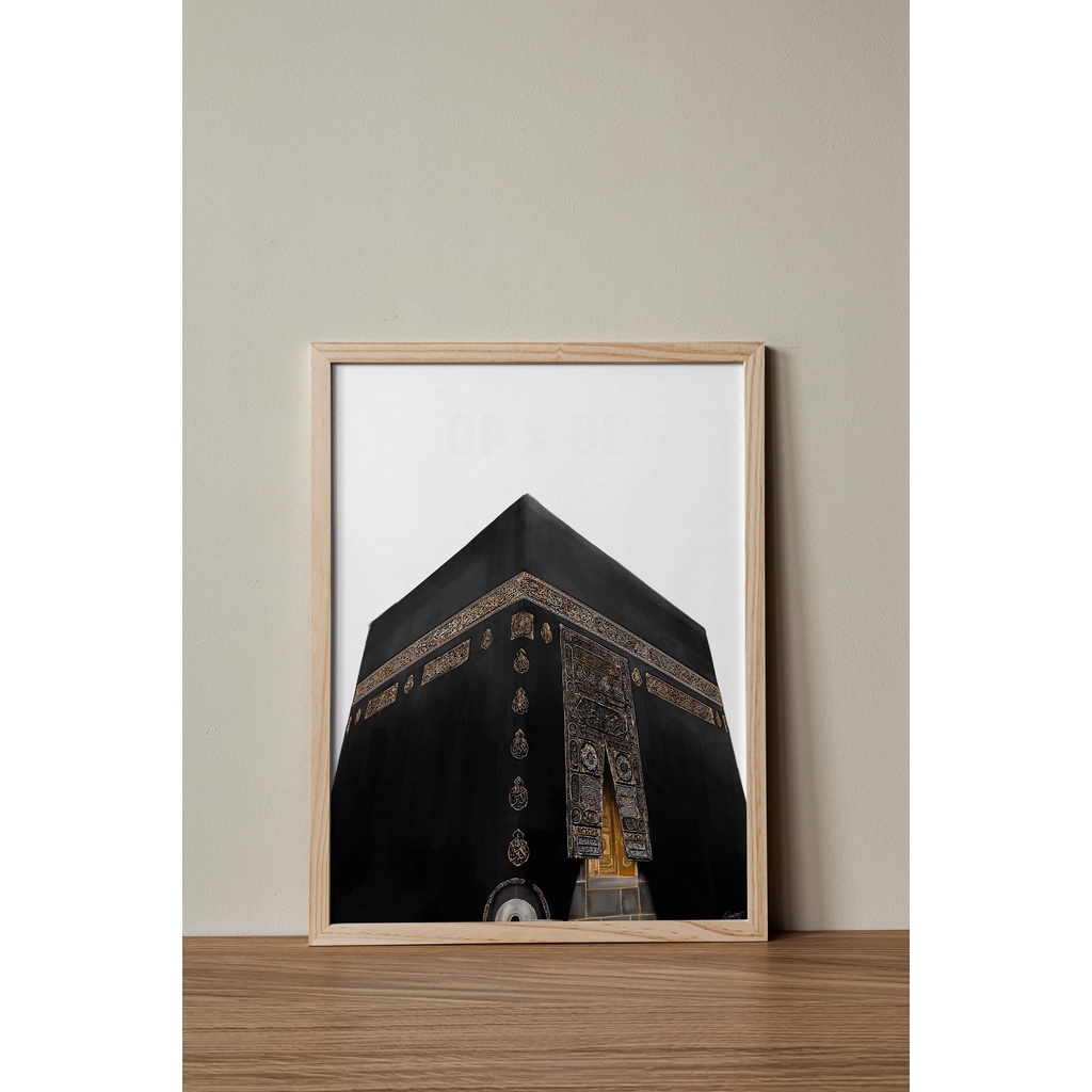 Pajangan Islami lukisan digital ilustrasi Kabah - Masjidil Haram - Mekah / Frame Kayu Minimalist Aesthetic / Interior islami / Lukisan islami / Poster Islam