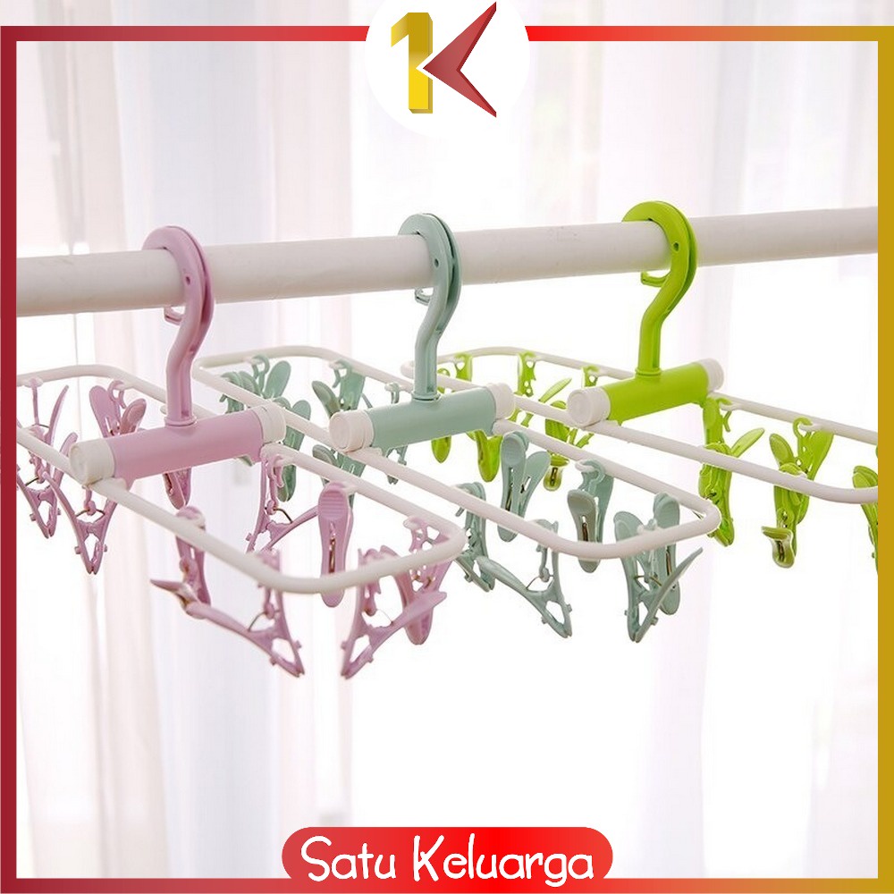 Gantungan Baju Lipat Jepitan 12IN1 / Hanger Jemuran Baju Plastik Tebal / Hanger Kaos Kaki / Gantungan Pakaian Dalam