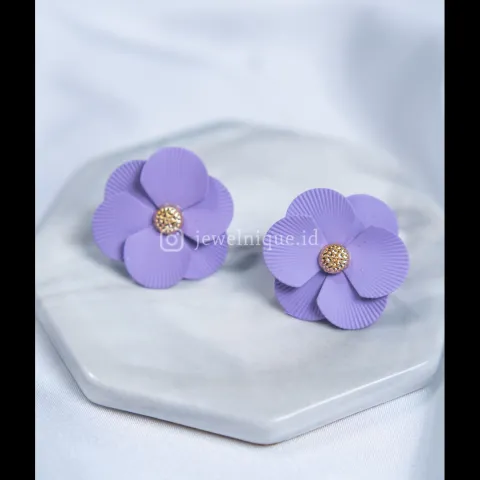 Anting tusuk wanita model Korea bentuk kelopak bunga warna ungu