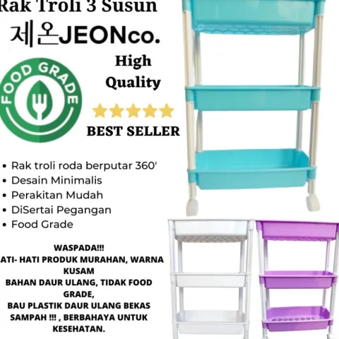 Rak Troli 3 Susun Roda Multifungsi Penyimpanan Portable Trolley