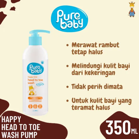 Pure Baby Happy Head To Wash Pump 350ml - Shampo Bayi 2in1