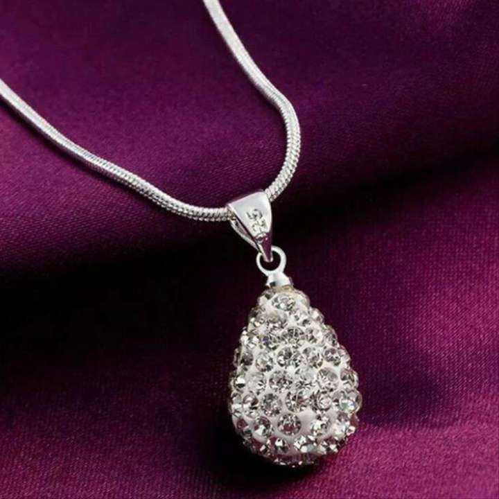 Kalung Perhiasan Wanita Liontin Kristal Silver Titanium Silver Acecoris Pengganti Emas Anti Karat