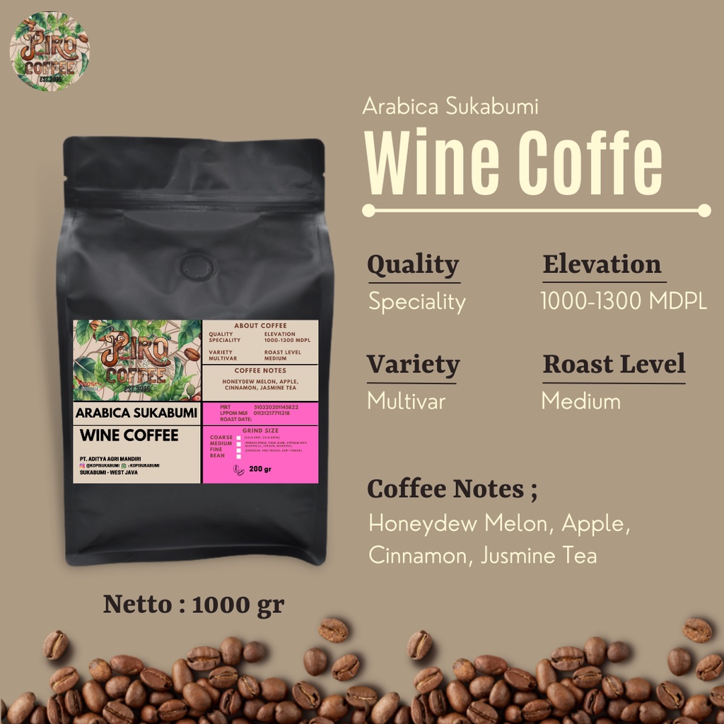 Piro Kopi Sukabumi Arabika Wine 1000gr | Fermented Coffee | Medium