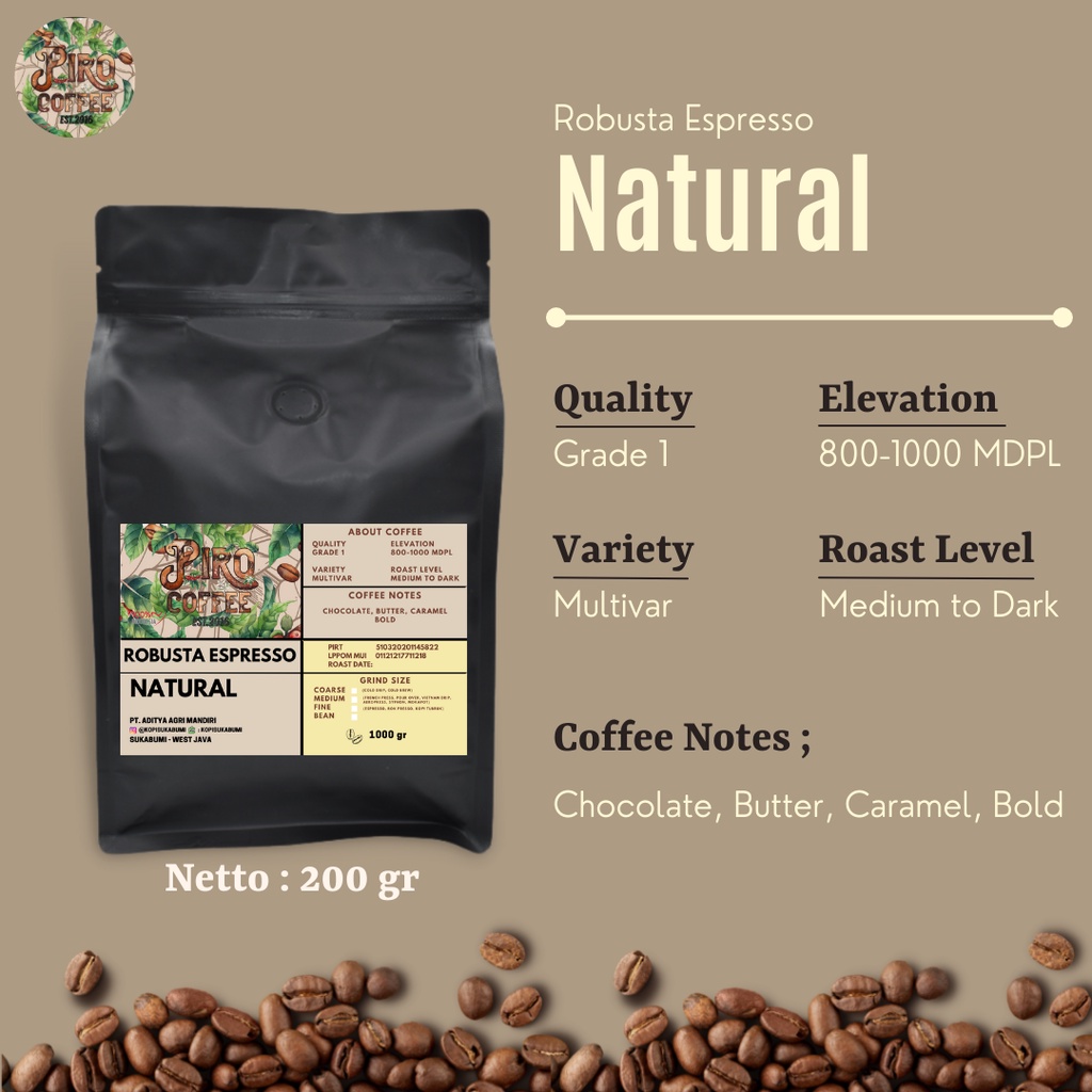 Piro Kopi Sukabumi Robusta Espresso 200gr I Espresso Best Seller