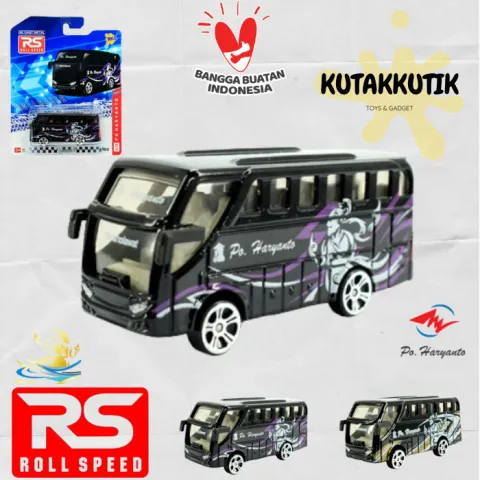 Mainan Mobil Bus Travel Wisata Indonesia Diecast RS Roll Speed 1:64 Bus PO Haryanto Made In Indonesia