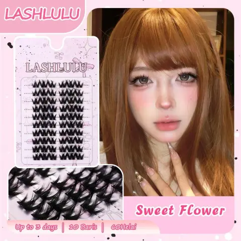 LASHLULU B05 Sweet Flower Bulu Mata Palsu D Curl 6-13mm Tebal Lentik Manga Eyelash Extension Super Halus 10 Baris 60 Helai Glam Dramatic Look Tahan Lama Lem Maskara Bulumata Hitam