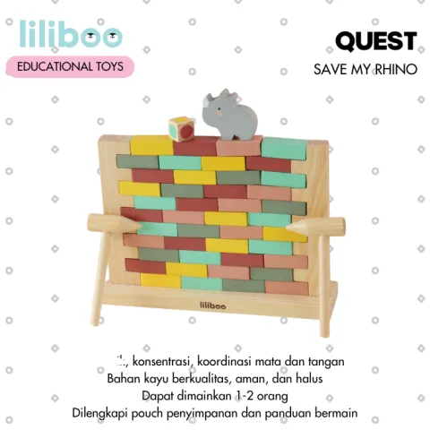 LILIBOO QUEST Mainan Edukasi Anak Montessori Kayu Save My Rhino Stacking Blocks Balok Susun Domino 44 pcs Family Game