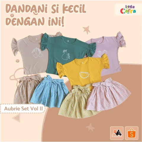 Setelan Pakaian Kaos Dan Rok Pendek Anak Perempuan Super Lucu - Aubrie Vol II By Little Carra