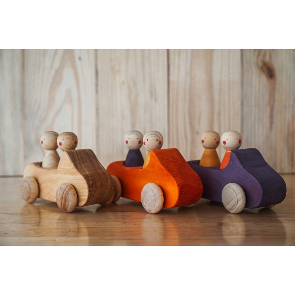 Littlemonq Toy Car with Peg Dolls Wooden Montessori Toys / Mobil Mobilan Kayu dengan Orang-Orangan Mainan Kayu Edukasi Littlemonq