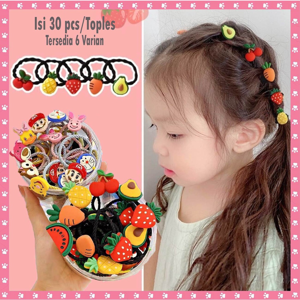 30 PCS / TOPLES SET KARET IKAT RAMBUT ANAK LUCU IMPORT PREMIUM / TALI RAMBUT KOREA ANAK HAIR AKSESORIS MURAH MODEL KARTUN BUAH HANDMADE
