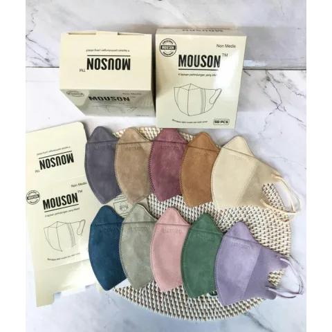 Masker Wajah Mouson 1 Pax 50 pcs, || Warna Abu-Abu || Coklat susu || Merah Tua || Milo || Putih || Navy || Abu Muda || Pink || Hijau || Purple ||