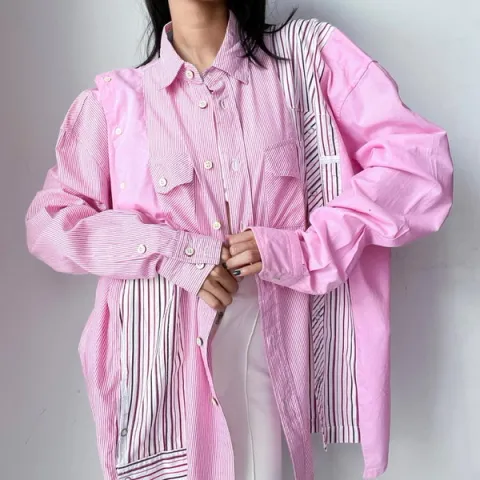 REWORKED - Reconstructed Shirt (Pink Stripes)