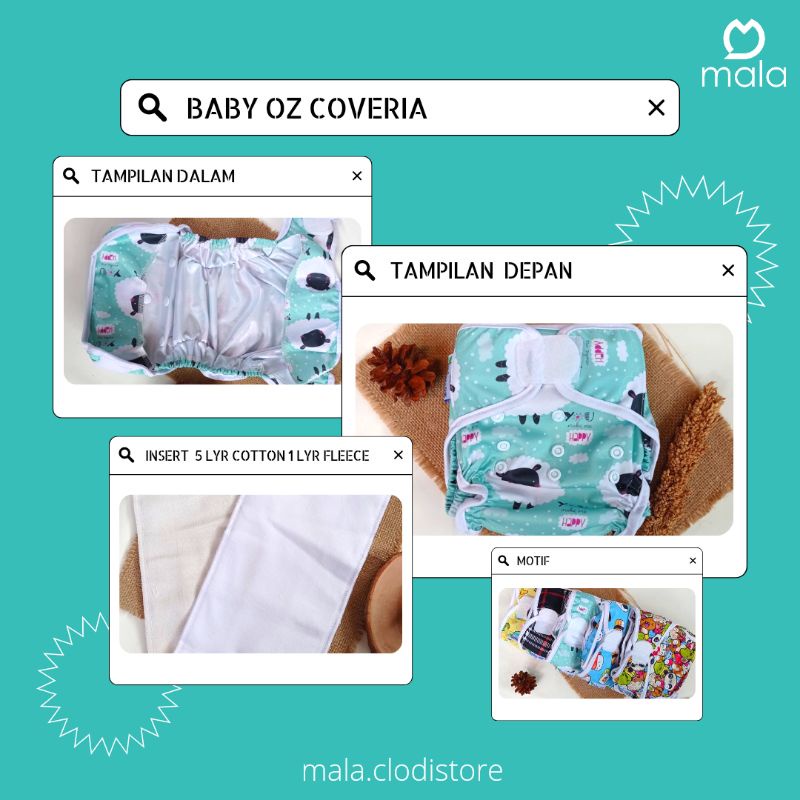 BABY OZ COVER MOTIF | clodi tipe cover | cepat kering | mudah dibersihkan | ramah lingkungan | BB 3-15kg