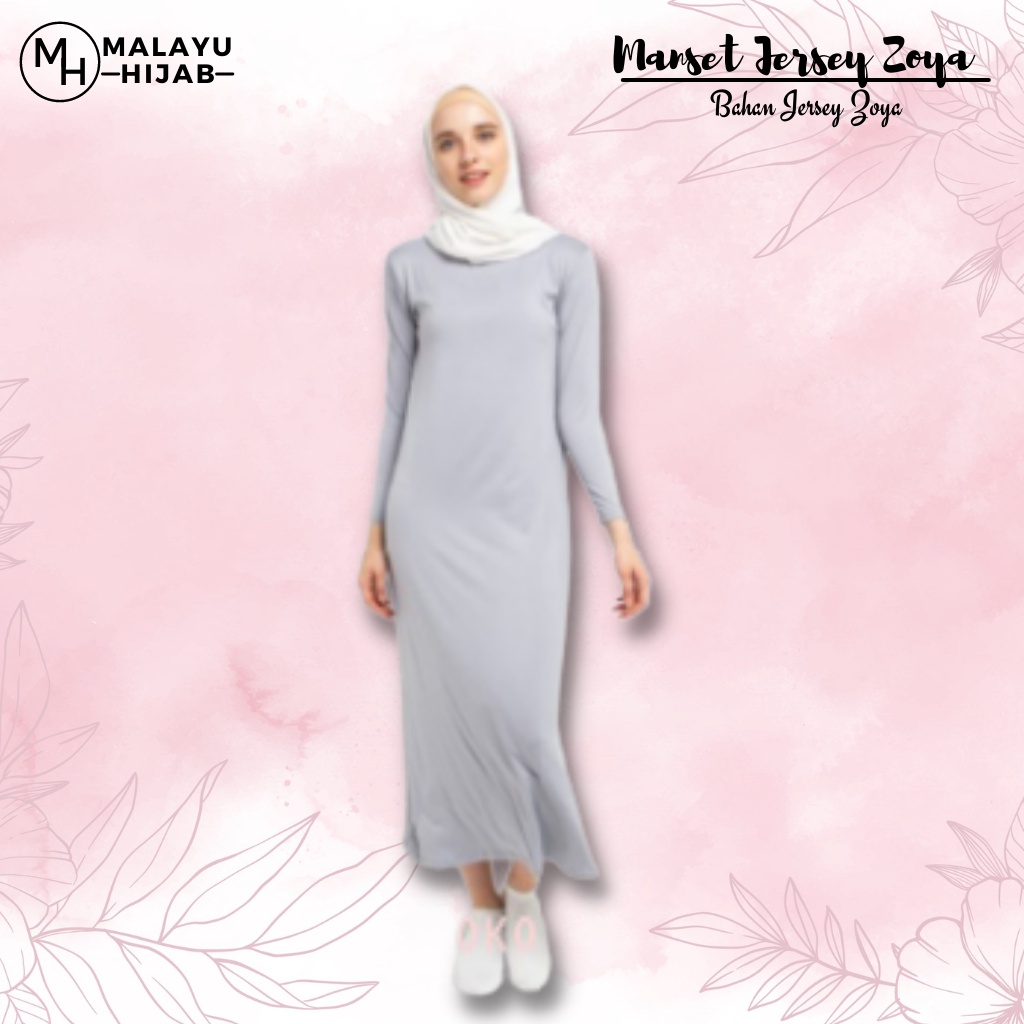 MALAYU HIJAB Daleman Manset Mangset Inner Gamis Polos Lengan Panjang Jersey Jumbo Zoya Warna Abu-abu