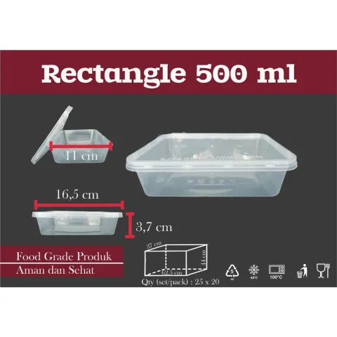 Thinwall Rectangel 500 ml Isi 25 pcs Kotak Plastik