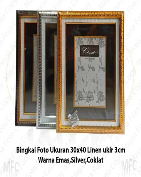Bingkai foto A3 17R (30x40) Linen Ukir 3cm Emas Silver Coklat - Emas