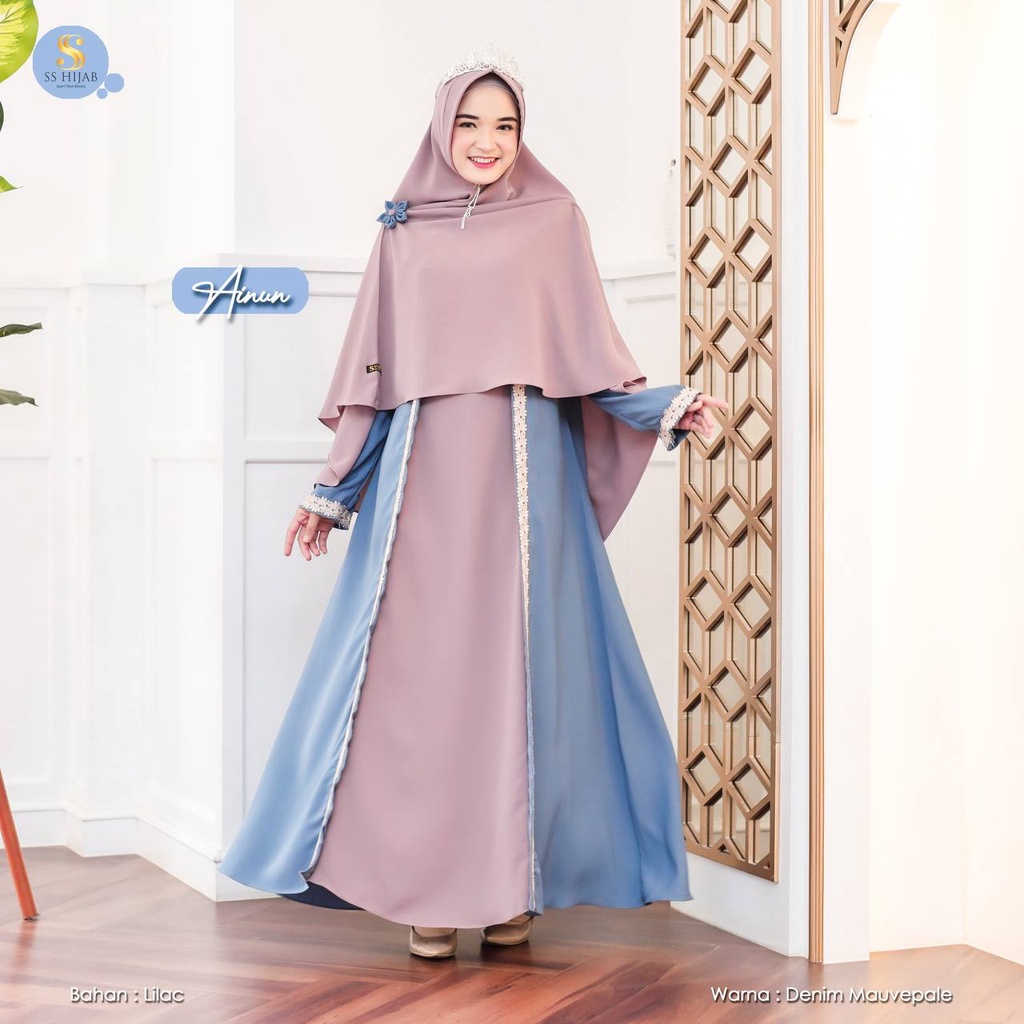 Gamis Abaya Ainun Warna Denim Mauvepale Ekslusif by SS Hijab