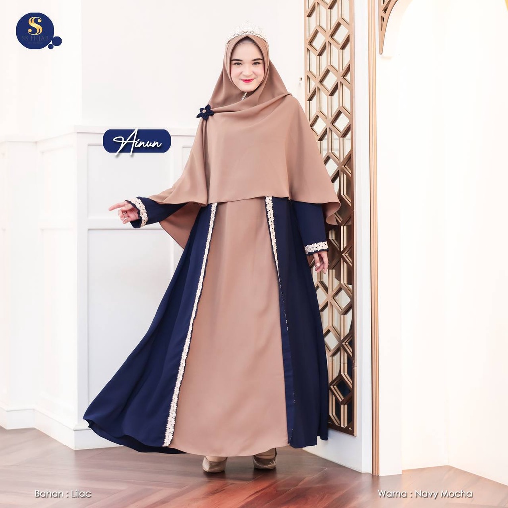 Gamis Ainun Set Khimar Basic Warna Navy Mocca by SS Hijab