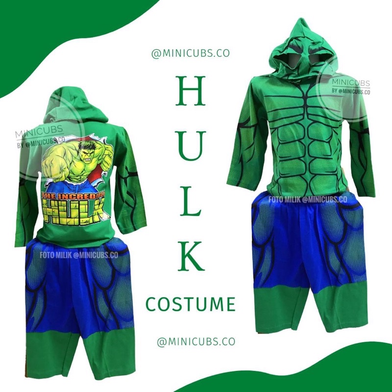 Baju Hulk Anak Laki Laki Cowok Kostum Karakter Bertopeng Superhero Avengers Setelan Main Minicubs