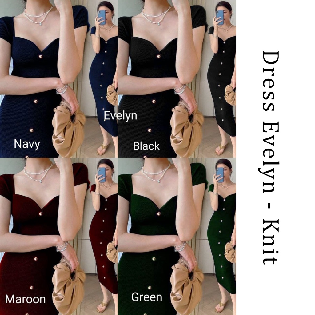 Midi Dress Evelyn Wanita Bahan Knit Rajut Onesize