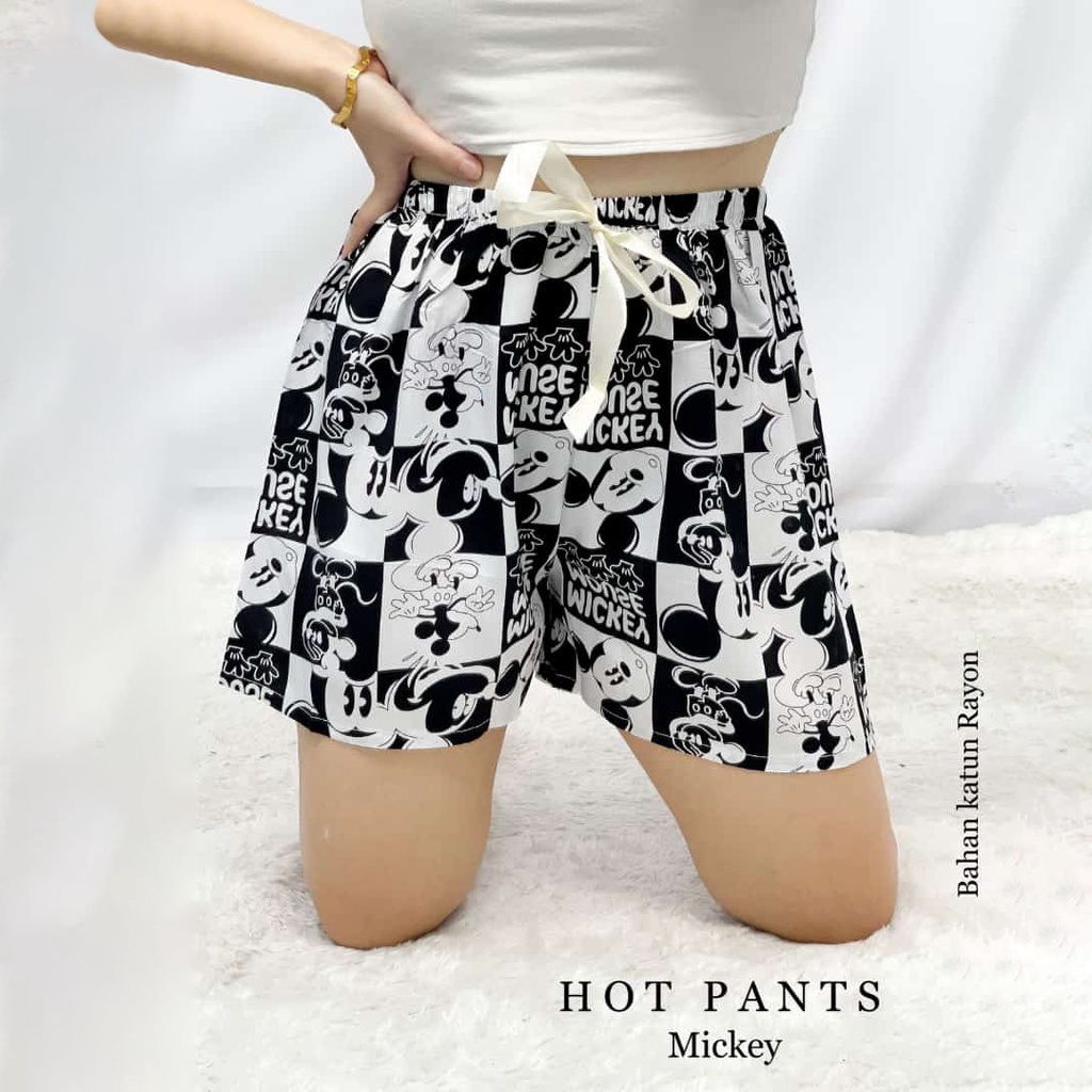 Mikey Mouse Celana Pendek Santai Wanita Bahan Katun Allsize