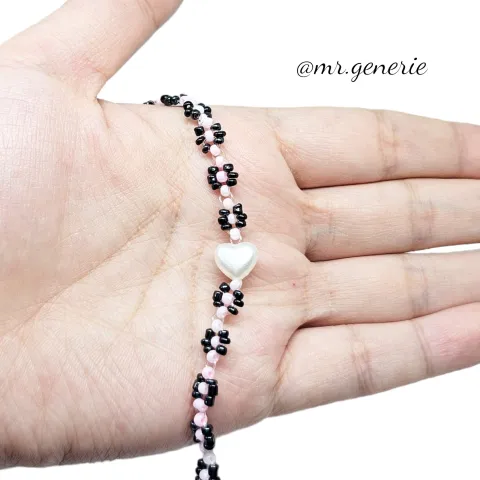 Mr.Generie BlackPink Retro Bracelet Handmade / Gelang Vintage Black Pink Hati Manik / Aksesoris unik chic korean