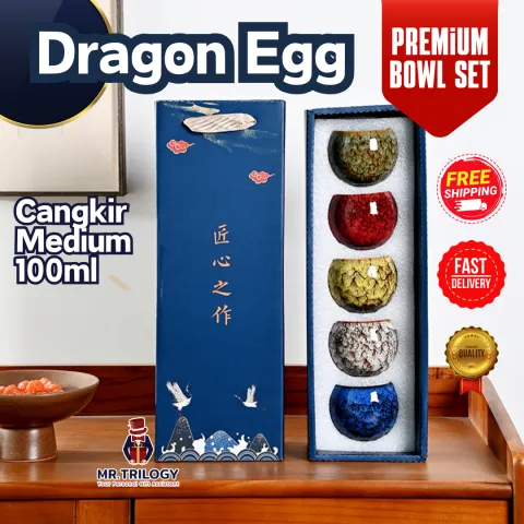 Hampers Cangkir Keramik DRAGON EGG Souvenir Gelas Teh Mug Kopi Chinese Tea Set