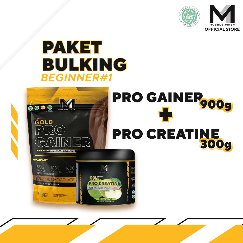 Muscle First Paket Bulking Pembesar Badan Pro Gold Gainer 2lbs + Creatine 300gr