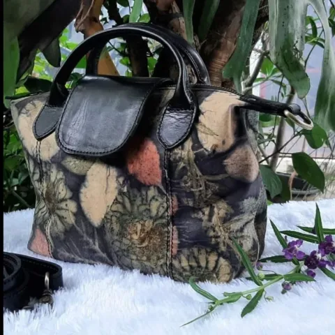 Tas kulit kambing ecoprint
