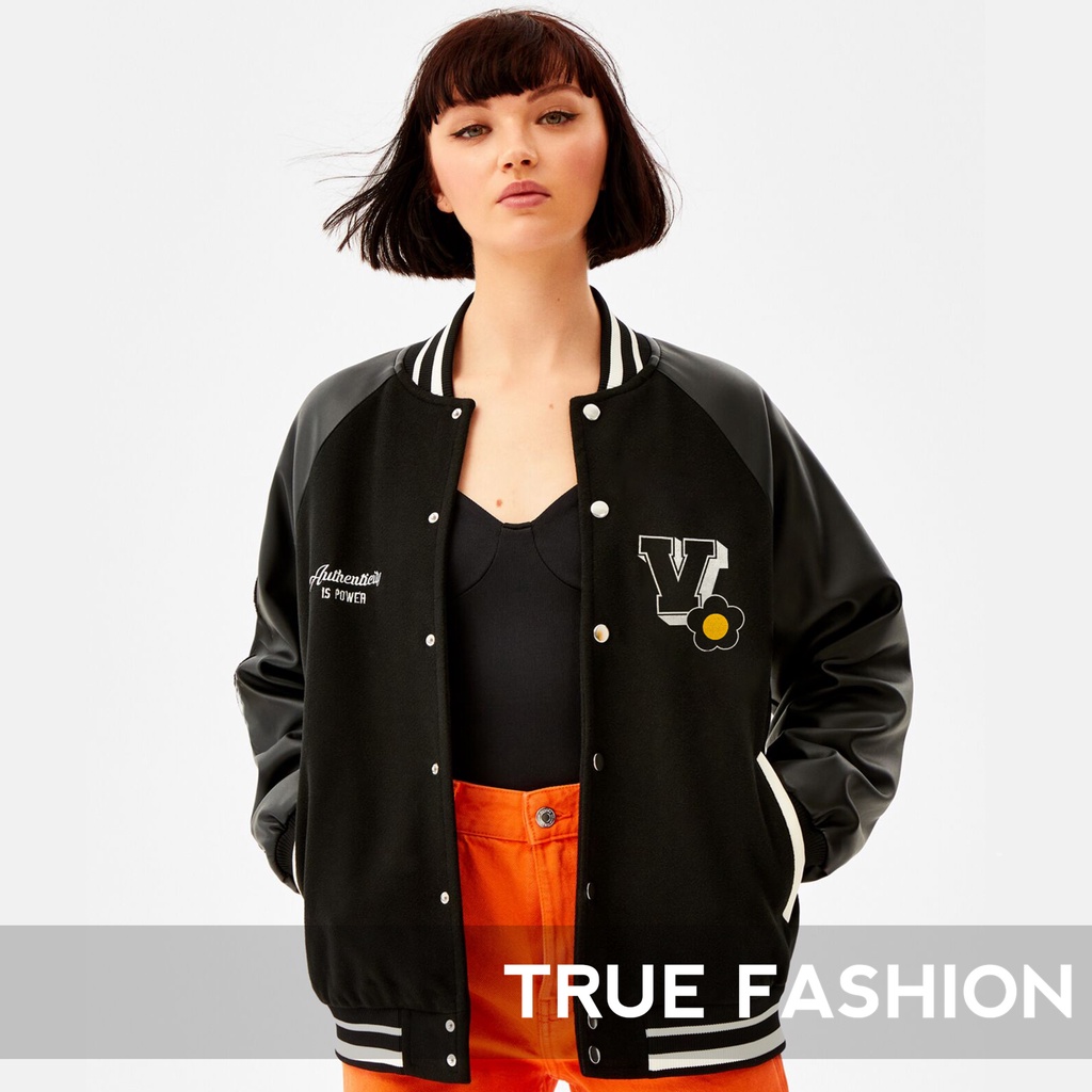 Jaket Baseball V Authenticity - Jacket Bomber Wanita - Atasan Wanita - Varsity Bershka - Allsize