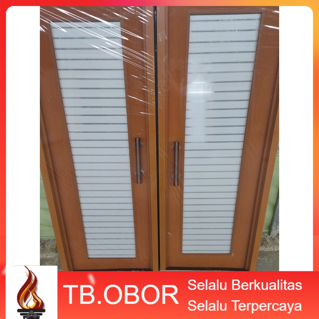 Pintu Kamar Mandi PVC Motif Crystal Hologram Garis Coklat Urat Kayu